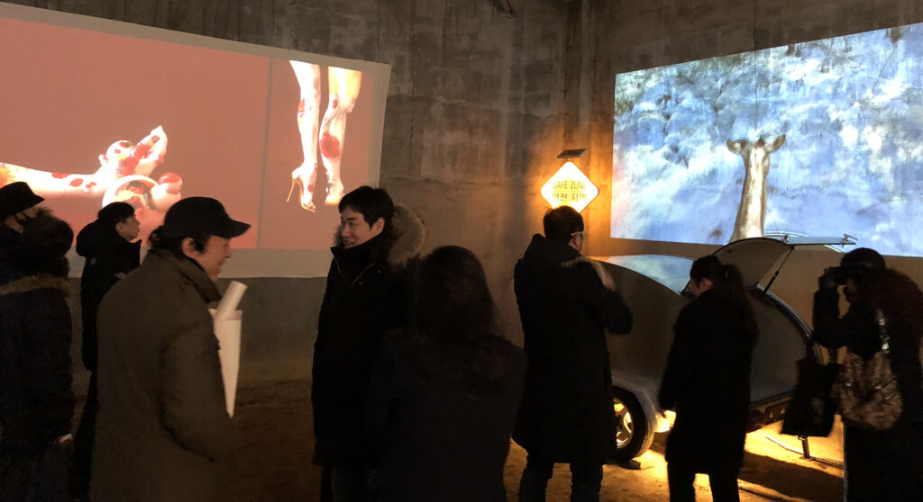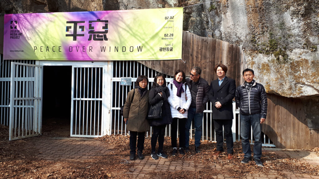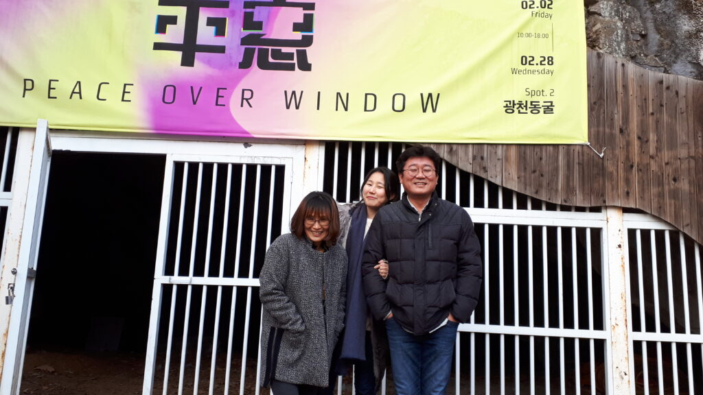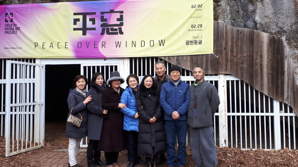 초대장평창역6개의 전시장 중 메인 전시장인 저온저장고, 평창역에서 걸어서 10분 거리에 위치좌로부터 이현정, 장샤오타오, 김성필, 김유석, 조세민원래 작가로 참여하는 것으로 시작했는데 본의 아니게 예술감독을 맞게 됐다.6개 중의 전시장인 감자창고 전시장인터뷰 중6개 중의 전시장인 다키닥팜 전시장다키닥팜의 주인 김달선회장님 현재도 연락중이다.平窓 Peace Over window 전 오프닝平窓 Peace Over window 전 오프닝6개의 전시장 중 하나인 감자창고 전시장 입구에서빔프로젝터 협찬을 해 주었던 엡손의 일본인 사장6개의 전시장 중 하나인 광천동굴 입구