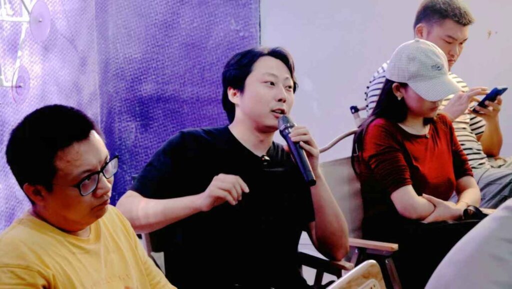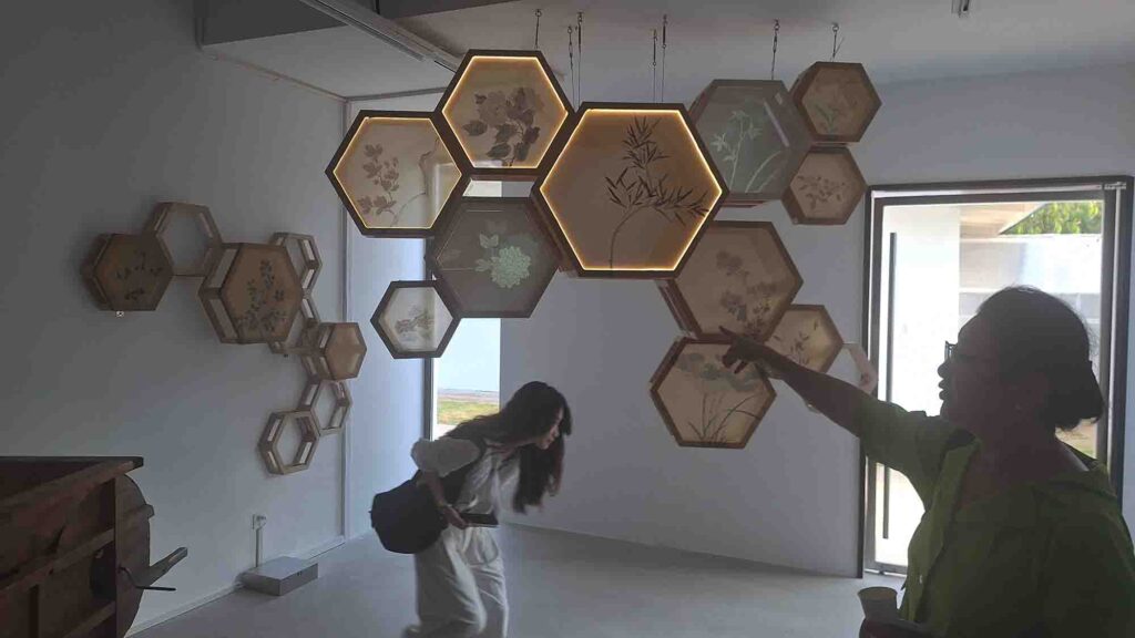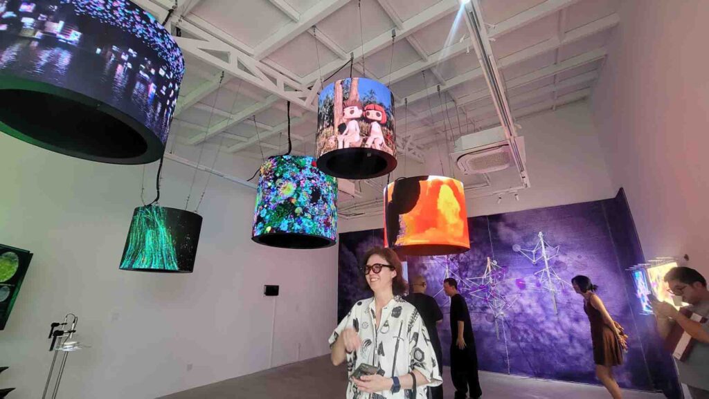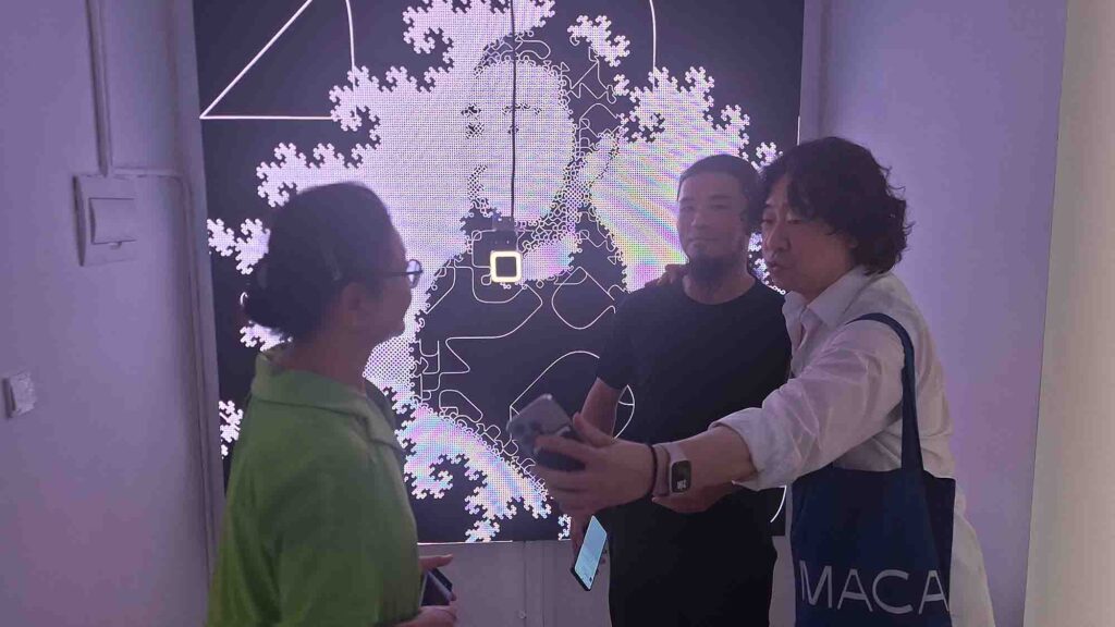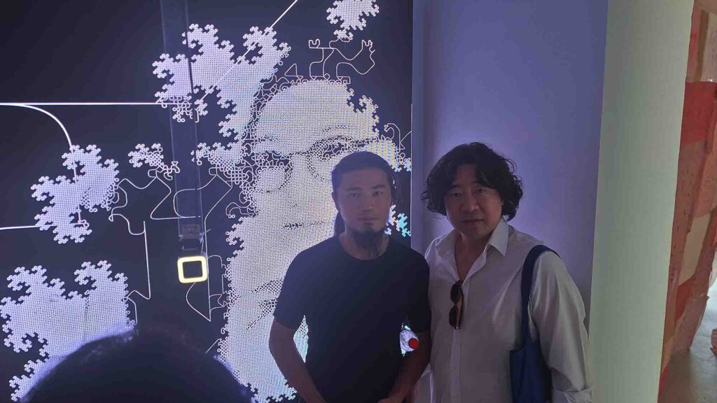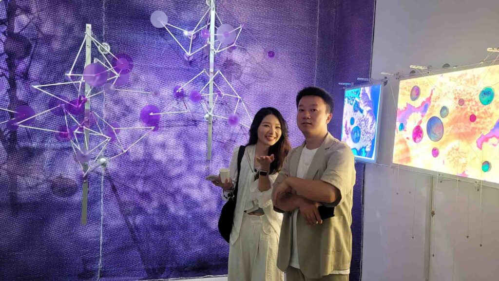항저우의 티아오베이미술관 개관전The Paddy Fields and the Re-Wild Digital Presentation of Farming Ecology 는 논밭과 농업 생태학의 재야생 디지털 발표 라는 의미베레나의 진행, 자신감 있게 잘했다좌측 상단의 사회자 베로나로부터 시계방향으로 티아오베이 미술관 관장 Chen Jie, 용안마을 당위원회 서기 장수보, 항저우 사진작가 협회 회장 유궈, 큐레이터 대표 장무첸, 프로젝트 수석 기획자인 Liu Min이이남작가의 작품김창겸의 작품천장에 설치된 작품 왼쪽부터 이돈아, 손사연, 김창겸, 조세민, 이이남의 작품단체사진 왼쪽부터 손사연, 이돈아, 조세민, 베로나邱宇/QIU Yu 작품郭锐文/Raven Kwok 작품, 이경호 작가와 함께郭锐文/Raven Kwok 작품张沐辰/ZHANG Muchen 의 작품夏炎/XIA Yan 의 작품FN 媒体实验室/FN Media Lab 의 작품徐超凡/XU Chaofan, 任庆齐/REN Qingqi 의 작품의 작품을 작동하는 김창겸샤이엔의 작품 앞에서 이돈아, 샤이엔郭锐文/Raven Kwok 작품이이남, Raven Kwok, 김창겸郭锐文/Raven Kwok 작품顾静/GU Jing 의 작품