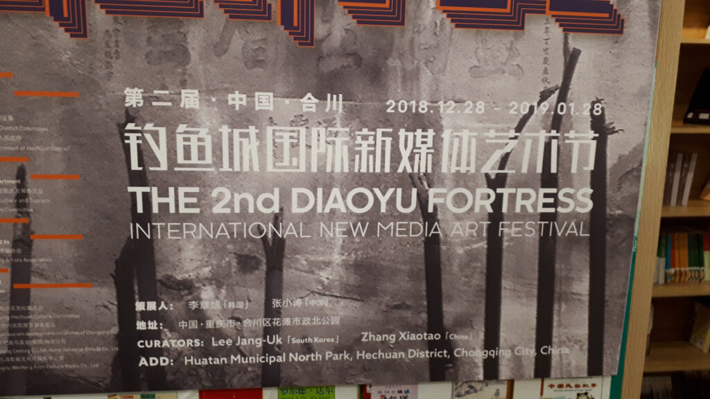 2018 The 2nd Diaoyu Fortress International New Media Art Festival 개막식, 허촨, 쓰촨성, 중국The 2nd Diaoyu Fortress International New Media Art Festival 포스터세미나설치 작품리짠양의 작품Diaoyu Fortress는 허촨 도심에서 Jialing 강 건너편에 있는 충칭 허촨구의 Diaoyu 산에 위치한 요새입니다. 지형은 가파르지만 아름답습니다. 충칭 허촨에서 동쪽으로 약 5km 떨어져 있으며 Qu, Fu 및 Jialing 강이 합류하는 지점 근처에 위치하고 있습니다. 약 700년 전, Yu Jian은 남송 왕조(1127-1279) 동안 몽골에 저항하기 위해 이곳에 요새를 건설했습니다